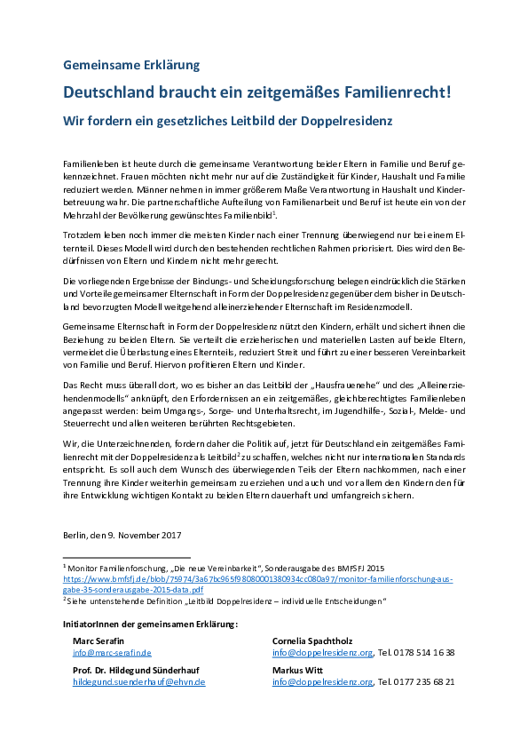 Die Pressemitteilung zur Aktion: www.doppelresidenz.org/page/blogposts/gemeinsame-erklaerung-deutschland-braucht-ein-zeitgemaesses-familienrecht-wir-fordern-ein-gesetzliches-leitbild-der-doppelresidenz-15.php
