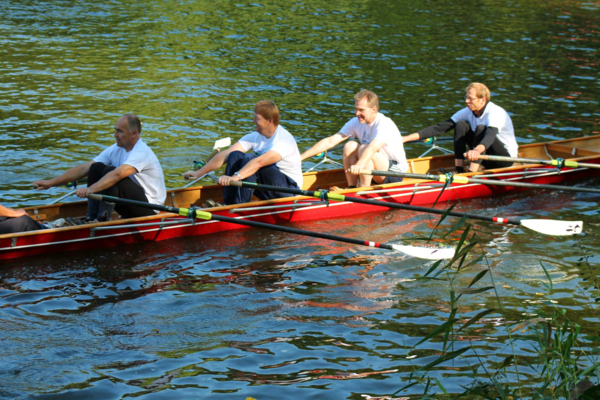 Väter der VAfK-Kreisgruppe Lübeck rudern für Kinder in einem Boot